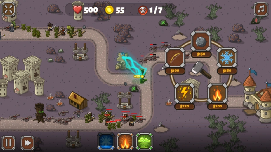 - ✅ ⚡ Заклинания и улучшения — когда становится совсем тяжело, используйте магию и прокачивайте башни.